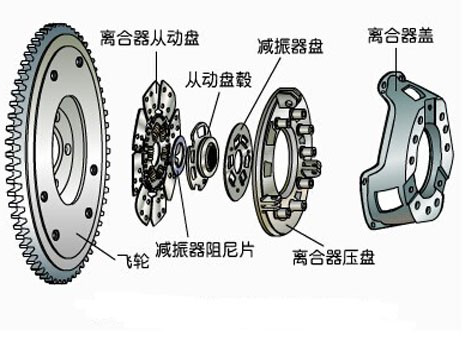 離合器又主動(dòng)部分、從動(dòng)部分、壓緊機(jī)構(gòu)、操縱機(jī)構(gòu)四部分組成。